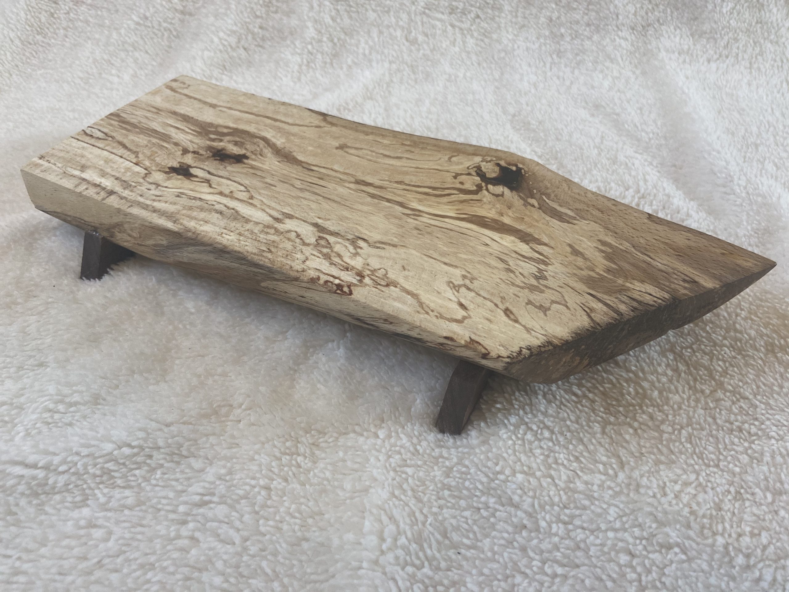 A beautiful small spalted beech Sushi Board sitting on elegant walnut legs.